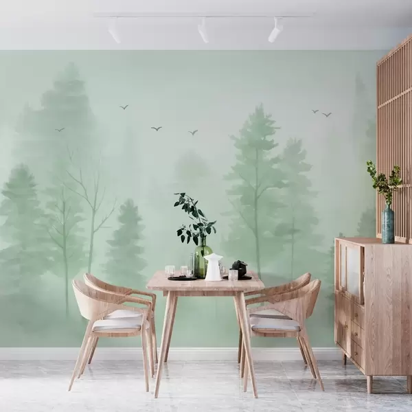 Fototapetai akvarelės stiliaus miškas iš paukščio skrydžio žalios spalvos tonais Nr. w04872v1