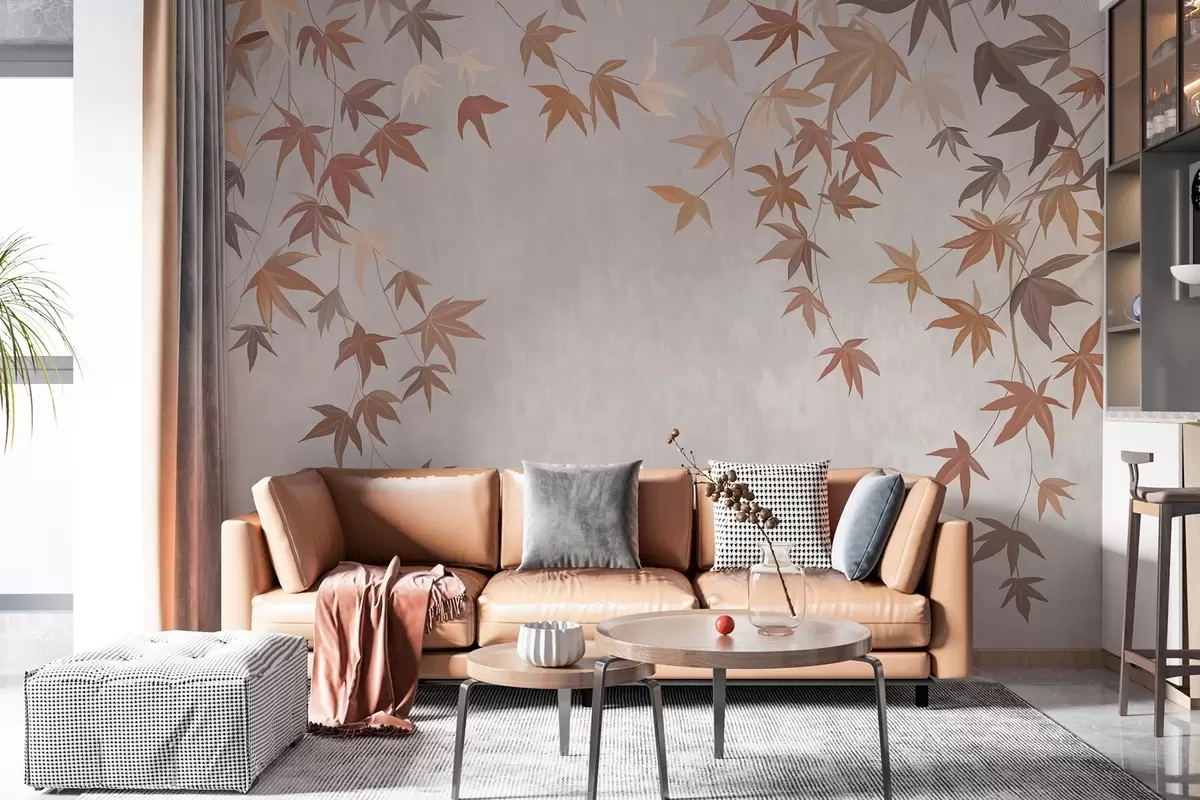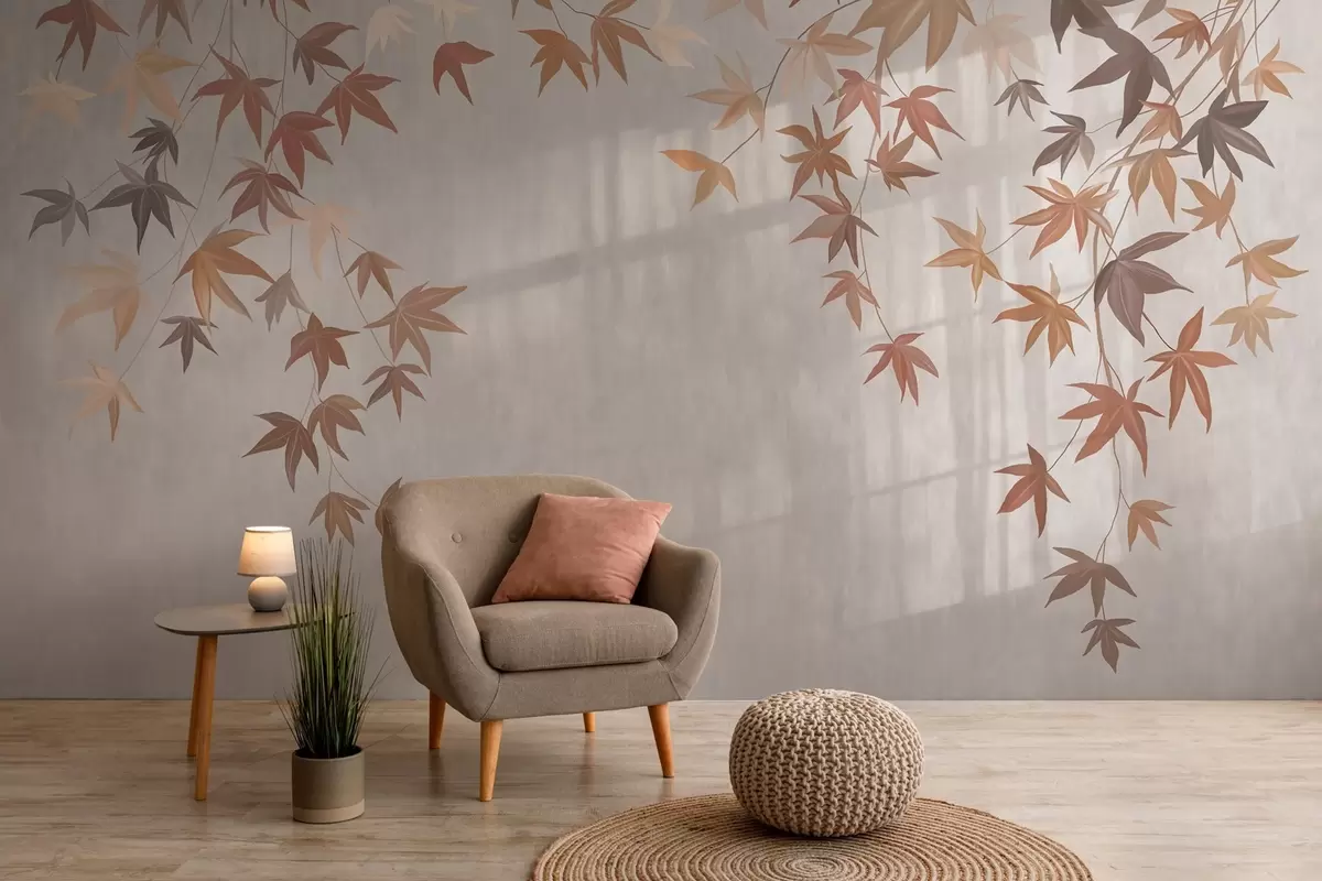 Fototapetai daugiakolorės gebenės lapai, krentantys iš viršaus aliejaus tapybos stiliumi Nr. w04878