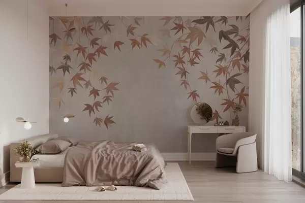 Fototapetai daugiakolorės gebenės lapai, krentantys iš viršaus aliejaus tapybos stiliumi Nr. w04878
