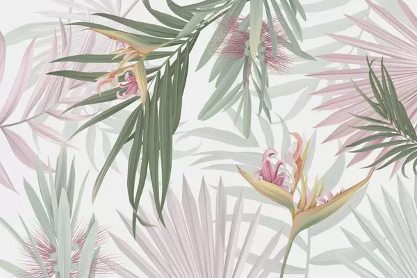 Fototapetai Strelitzia palmių lapijoje Nr. w04896