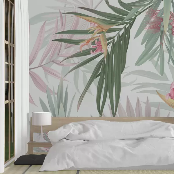 Fototapetai Strelitzia palmių lapijoje Nr. w04896v2