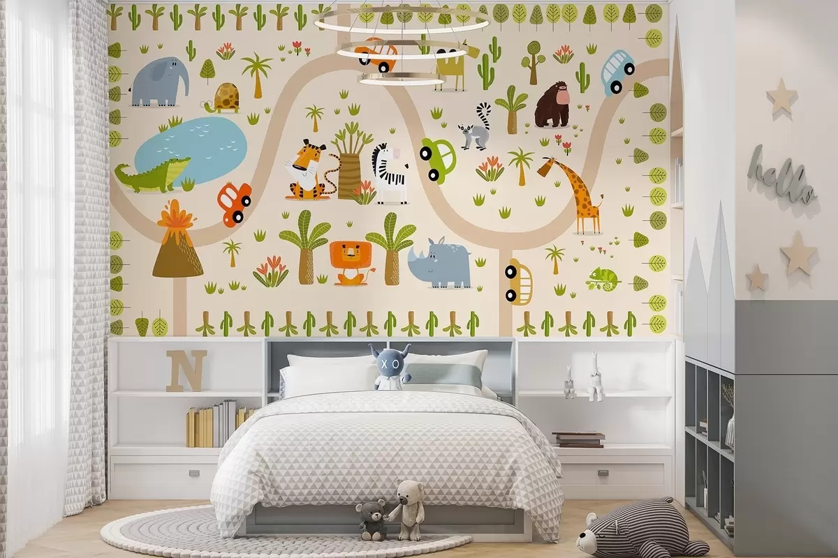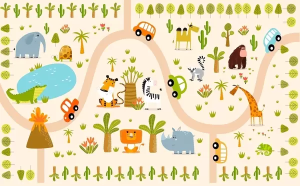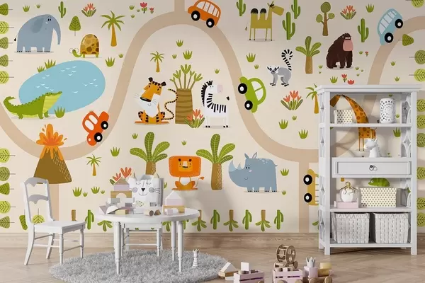 Fototapetai Safari su gyvūnais ir automobiliais Nr. w04931