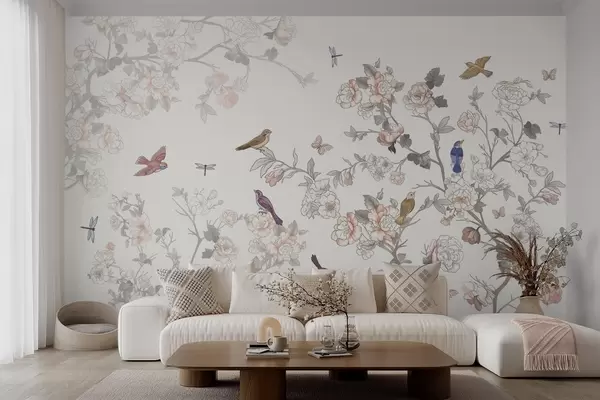 Fototapetai Paukščiai šalia šakų su žiedais Nr. w04939