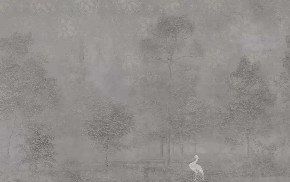 Fototapetai Šviesus rūko apgaubtas miškas su garza, atspalviai – šaltos pilkos spalvos Nr. w04953v2