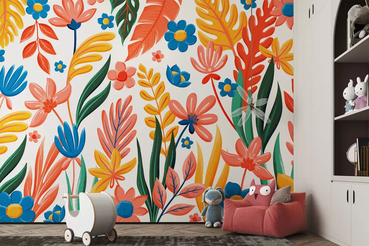 Fototapetai Ryškus raštas su gėlėmis ir lapais Nr. w05003