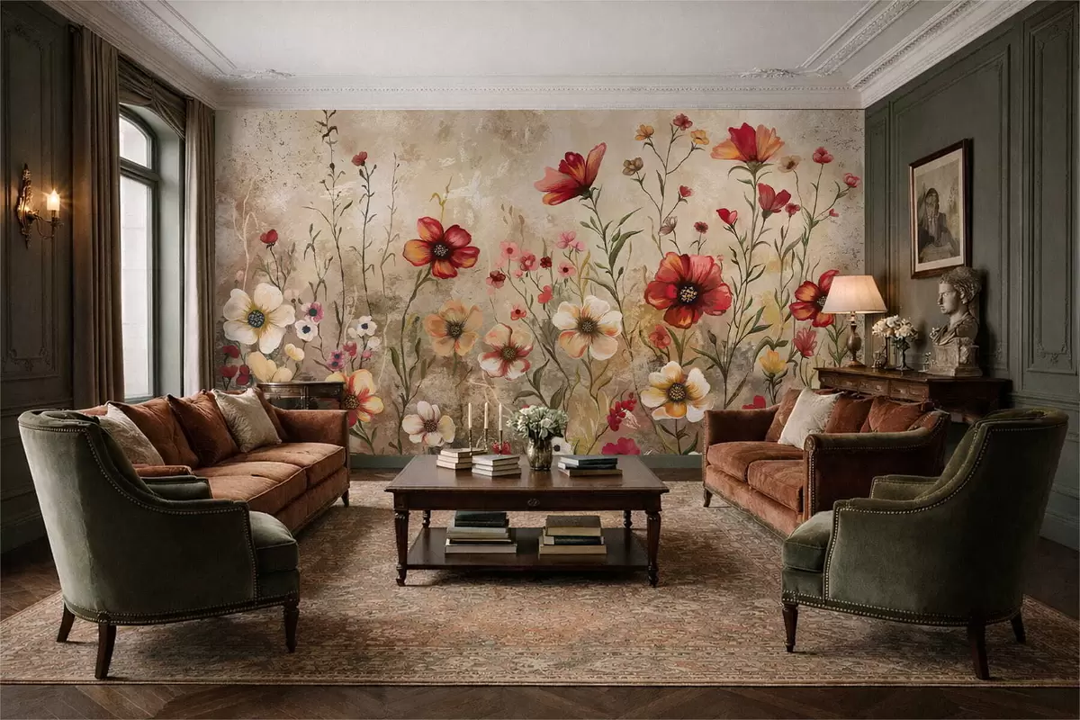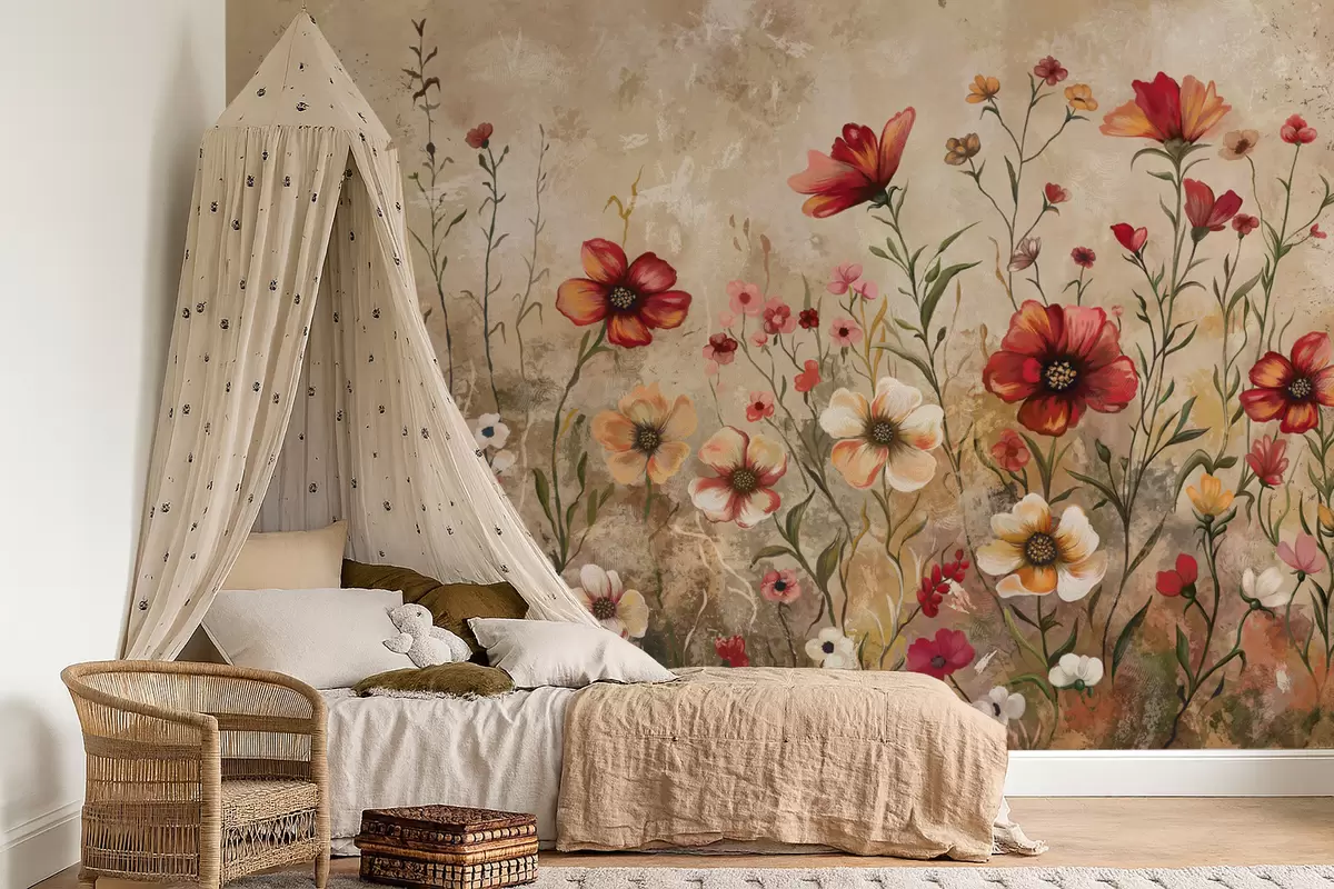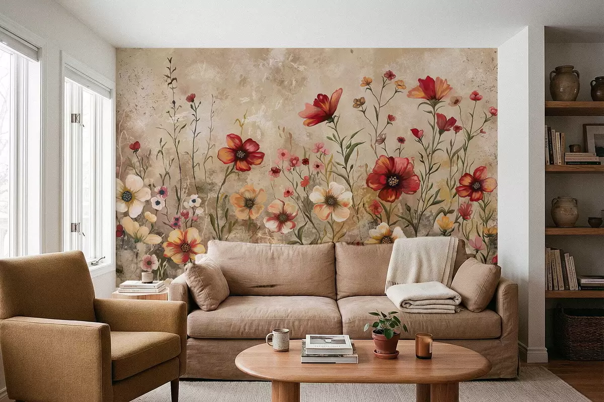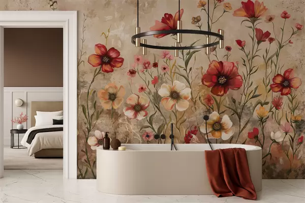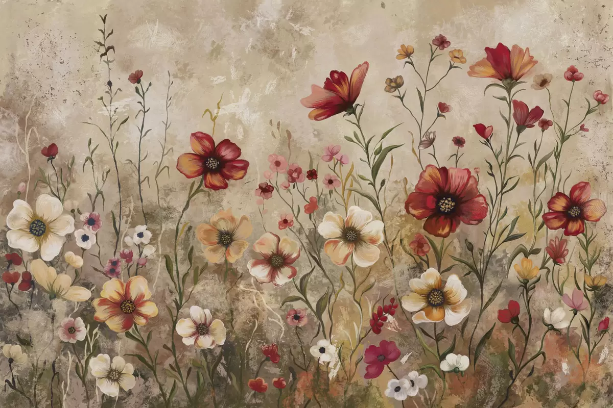 Fototapetai Gėlių kompozicija su tekstūruotu fonu šiltų atspalvių Nr. w05016
