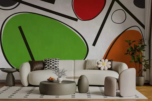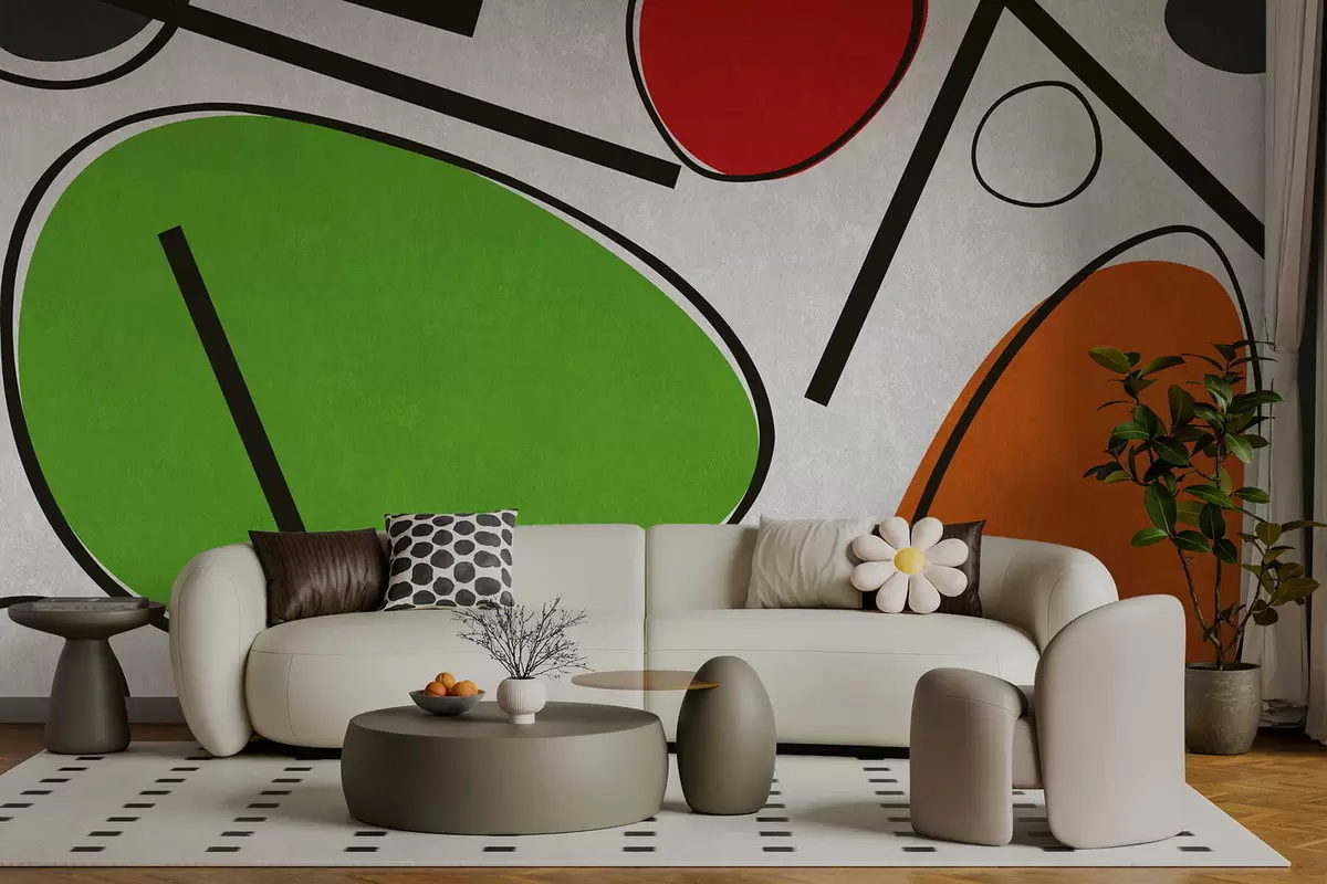 Fototapetai Abstrakčios geometrinės formos su linijomis ir ryškiomis spalvų sritimis Nr. w05017v1