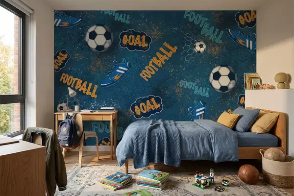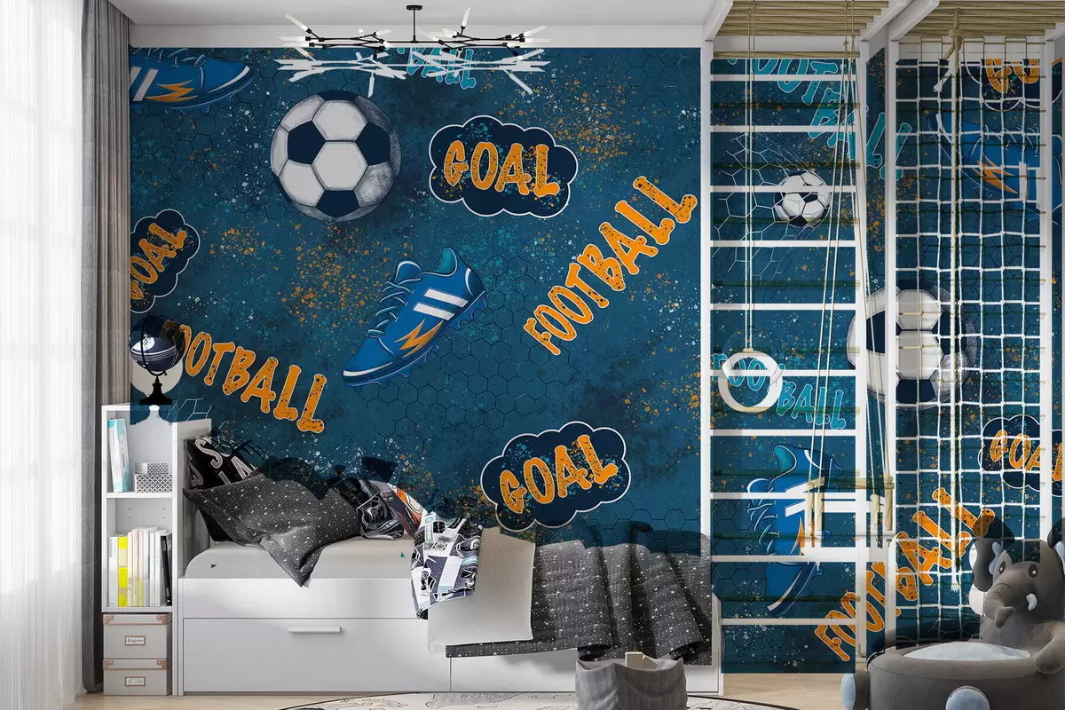 Fototapetai Vaikų raštas su kamuoliais, batais ir sportiniais žodžiais Nr. w05037