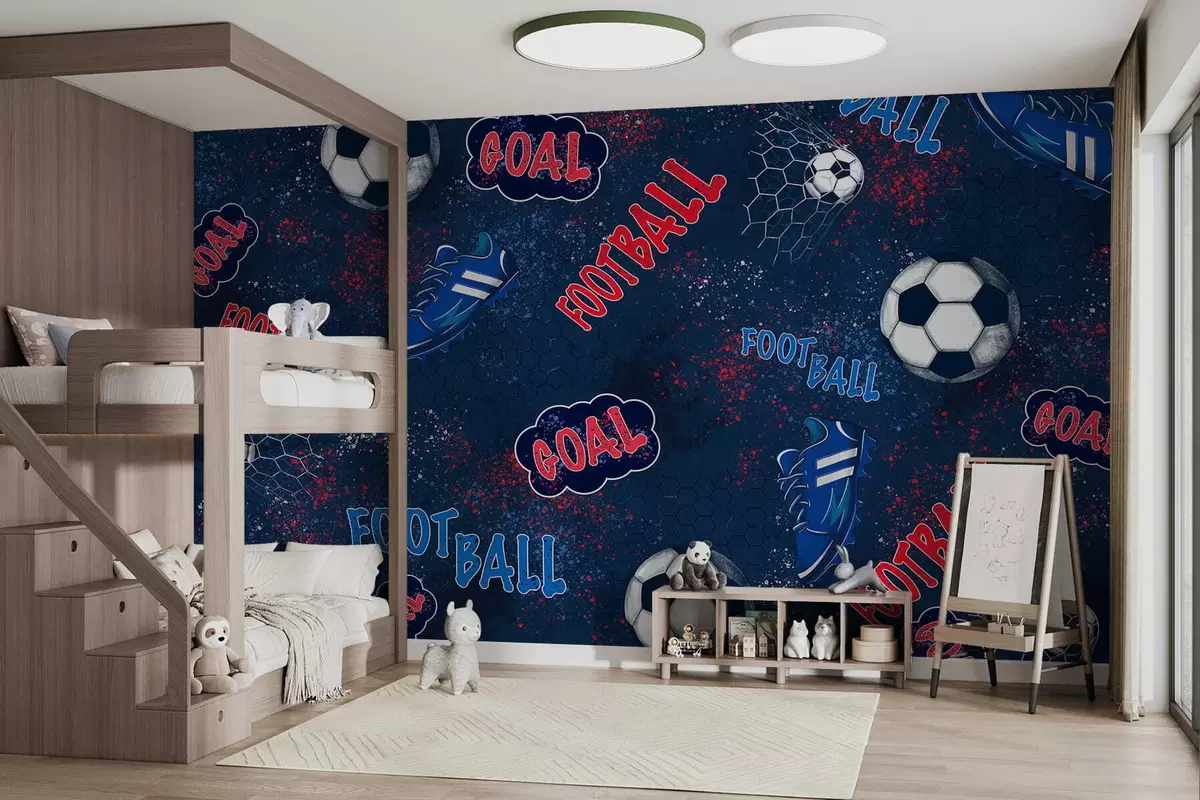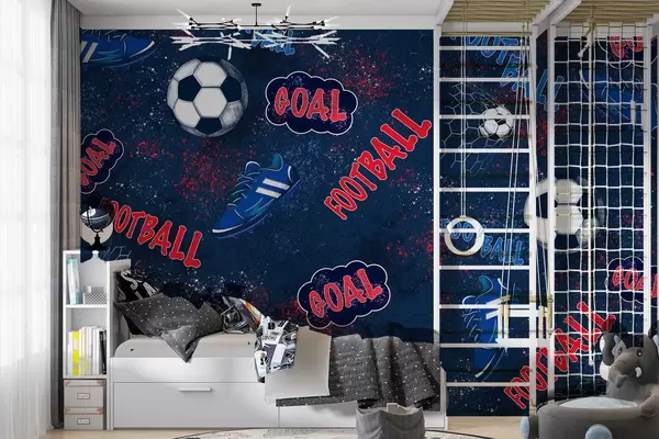 Fototapetai Pasikartojantis raštas su kamuoliais, smeigėmis ir tekstiniais elementais Nr. w05037v2