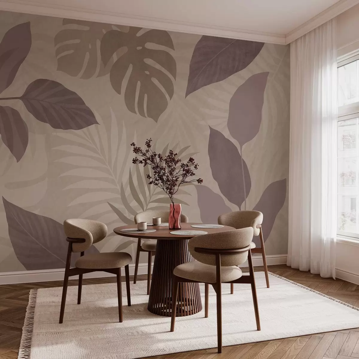 Fototapetai tekstūruoti tropiniai lapai smėlio fone Nr. w05063