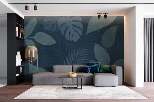 Fototapetai tekstūruoti tropiniai lapai ant tamsiai mėlyno fono Nr. w05063v3