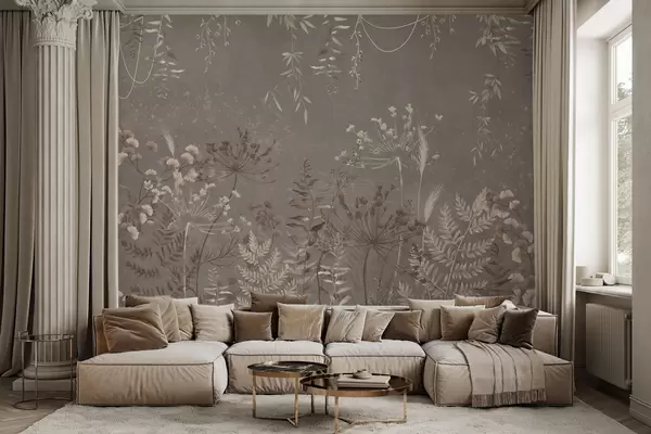 Fototapetai Šviesus botaninis raštas su gėlėmis ir lapais Nr. w05092v1