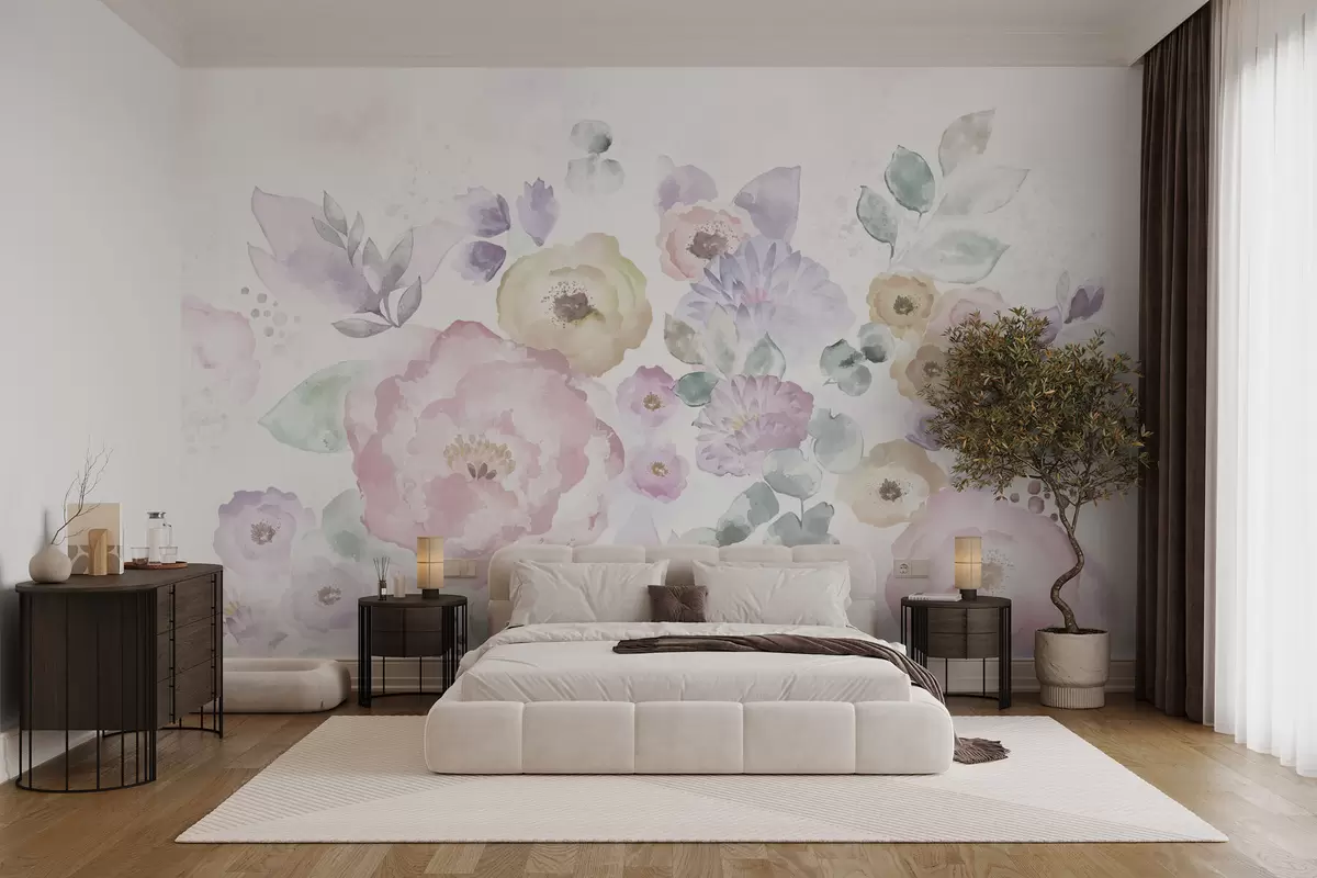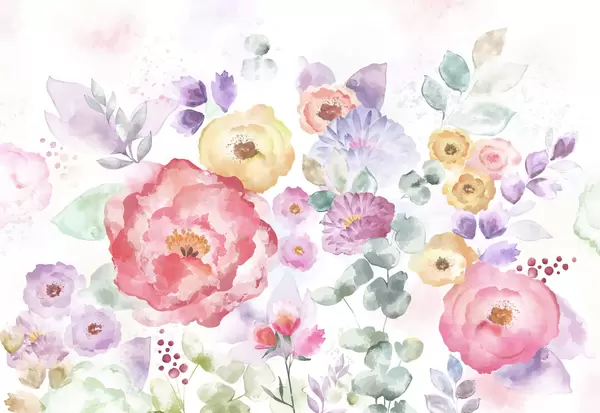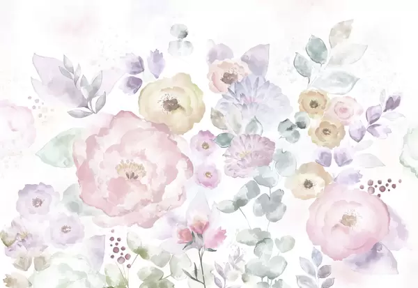 Fototapetai Švelni akvarelė su gėlėmis ir lapais Nr. w05093