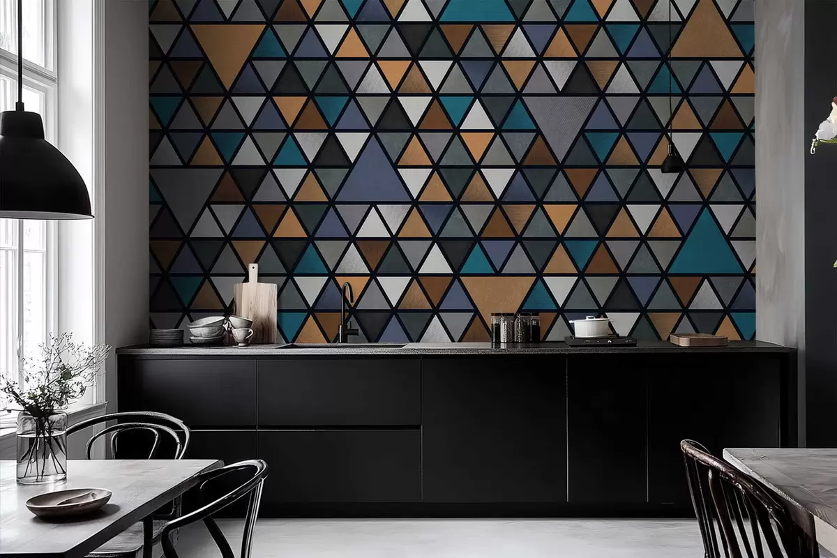 Fototapetai Daugiaspalvių trikampių geometrinis raštas Nr. w05094