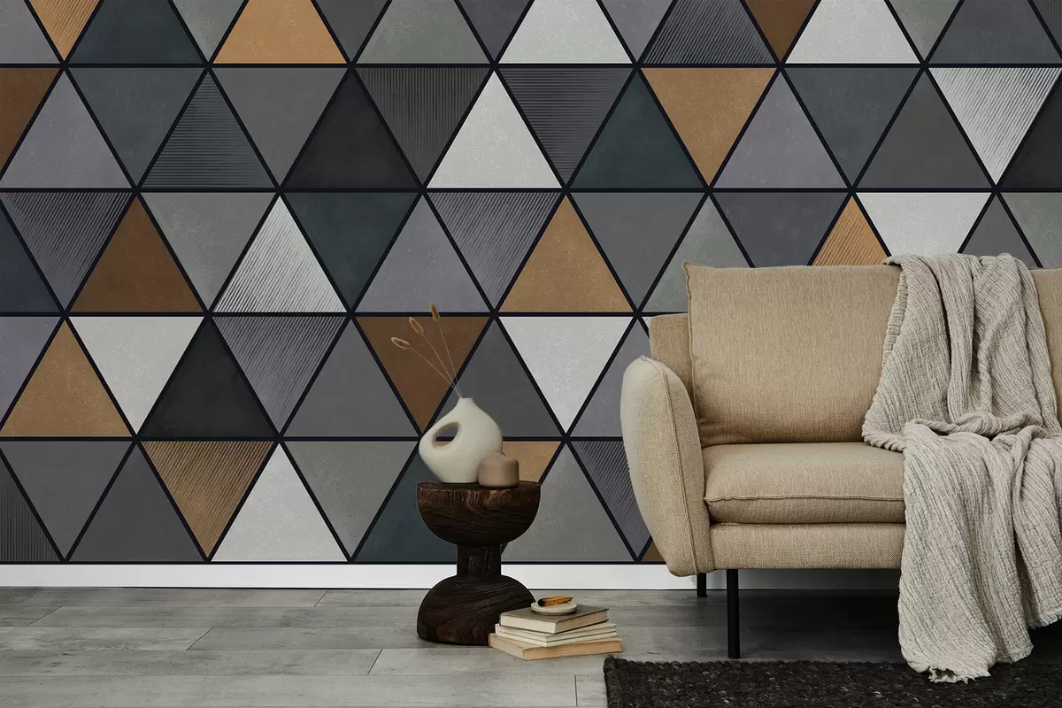 Fototapetai Trikampio formos raštas su pilkais ir šiltais atspalviais Nr. w05095v1