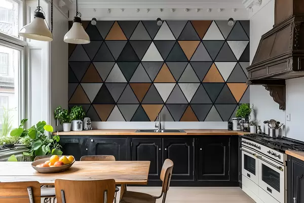Fototapetai Trikampio formos raštas su pilkais ir šiltais atspalviais Nr. w05095v1