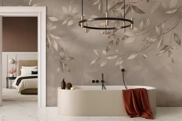 Fototapetai Elegantiškos lapotos šakos smėlio atspalviais ant šviesaus fono Nr. w05113