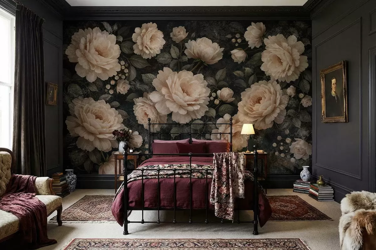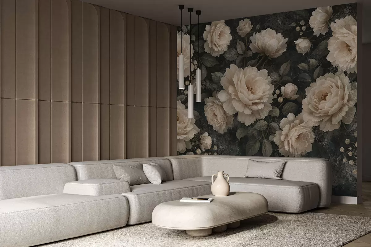 Fototapetai Tamsaus fono fone dideli smėlio spalvos gėlės Nr. w05114