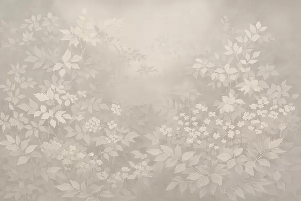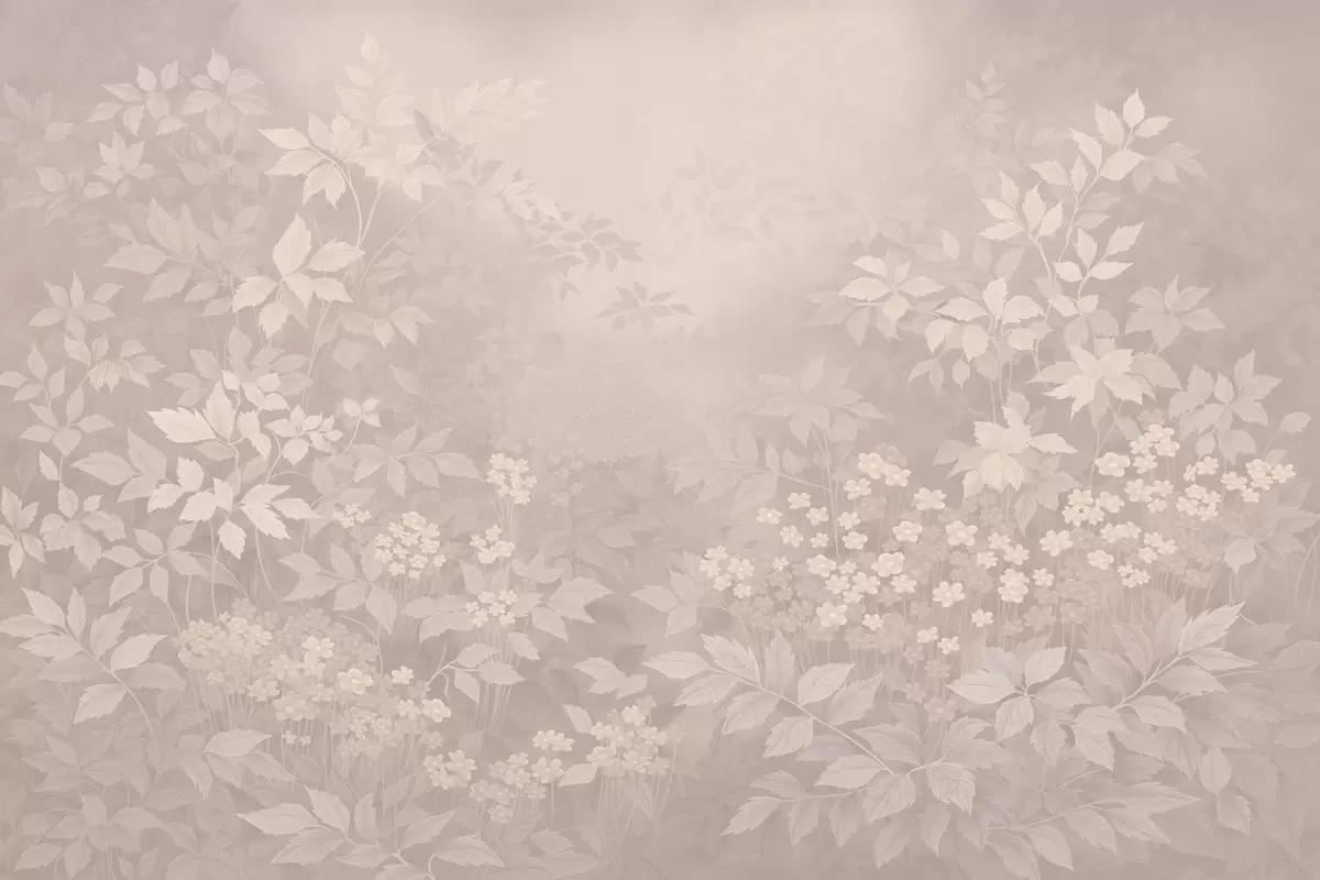 Fototapetai Lengvas botaninis ornamentas su lapais ir mažais žiedais Nr. w05115