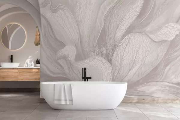 Fototapetai Šviesus abstraktus gėlės motyvas su banguojančiomis linijomis Nr. w05119v3