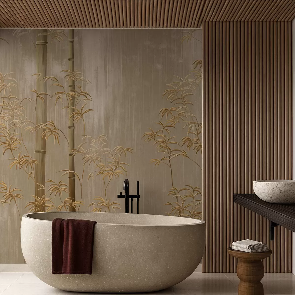 Fototapetai Smėlio spalvos bambukai su plonais stiebais Nr. w05120v2