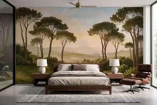 Fototapetai Peizažas su medžiais šiltame saulėlydžio šviesoje Nr. w05122