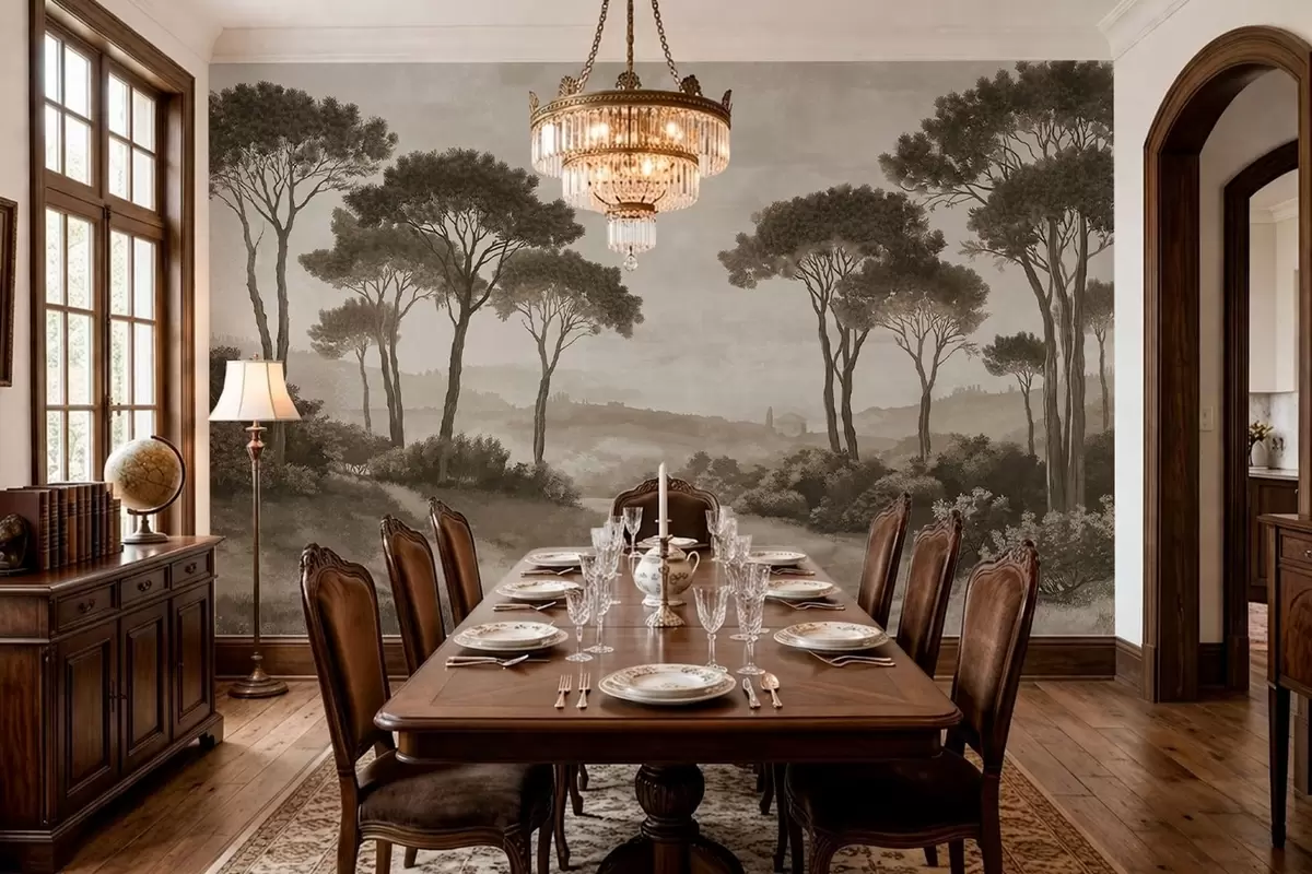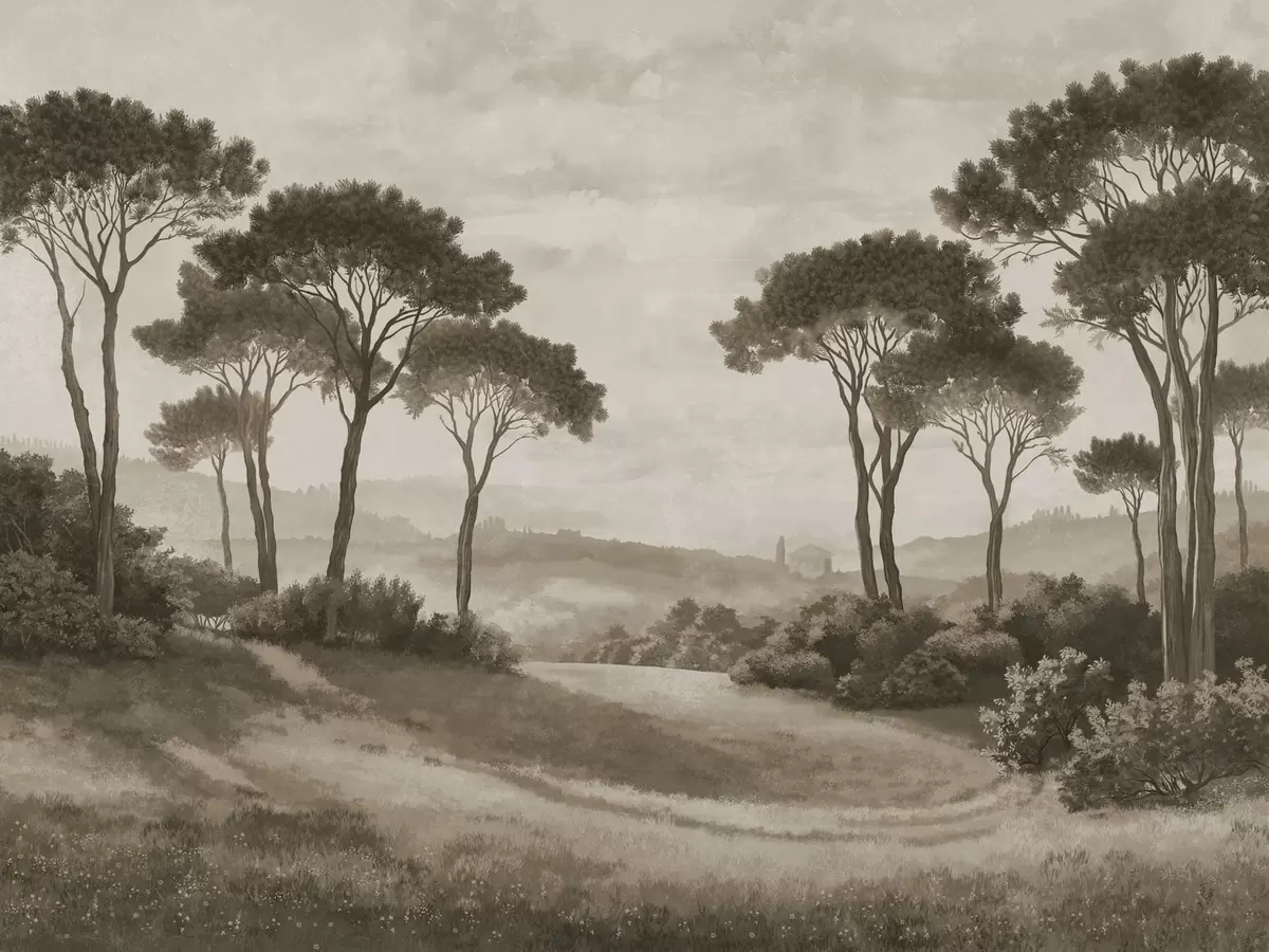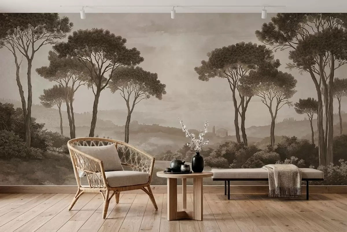 Fototapetai Peizažas su medžiais senoviniame sepijos atspalvyje Nr. w05122v2