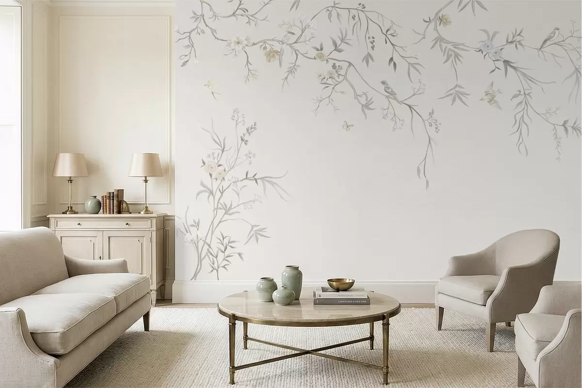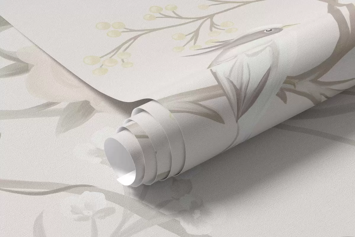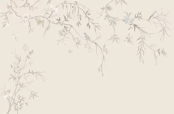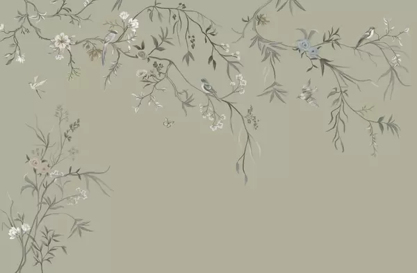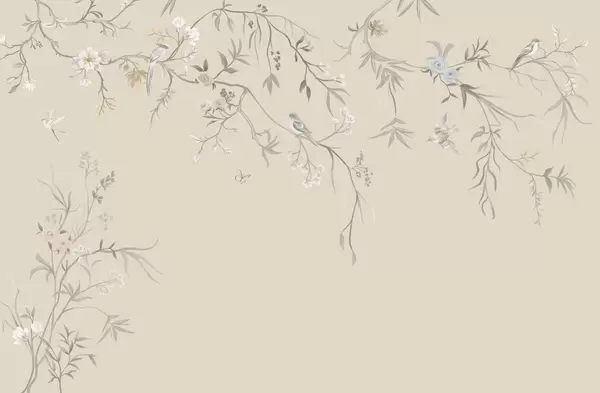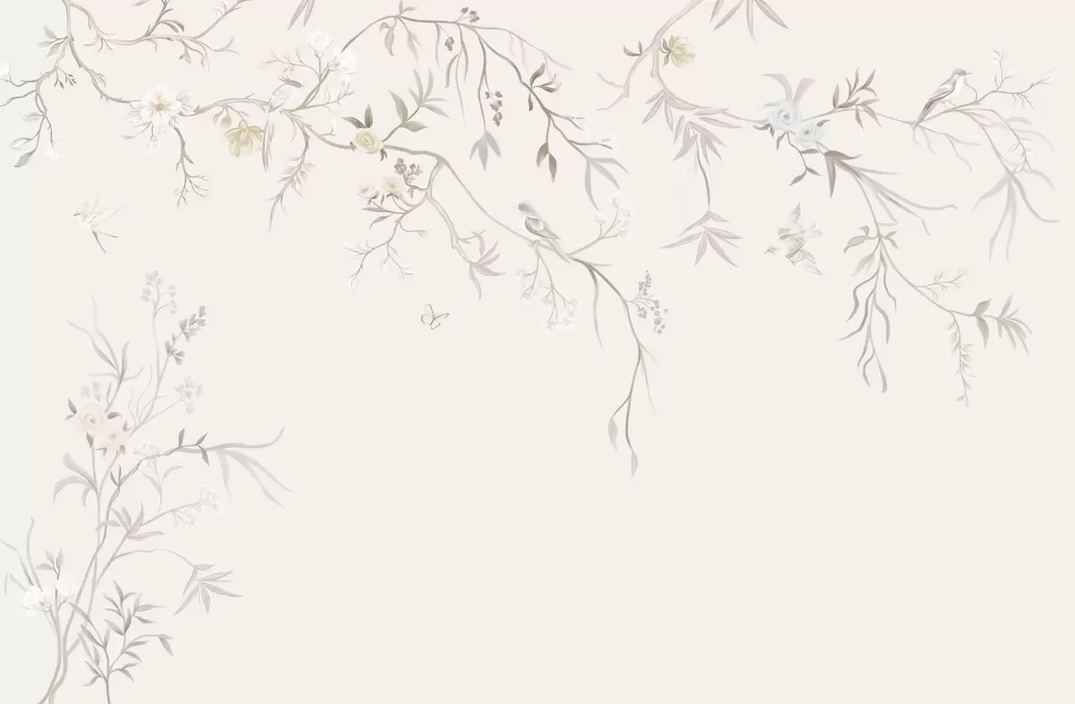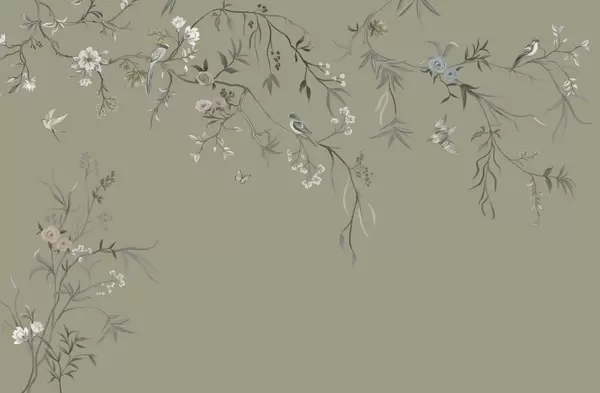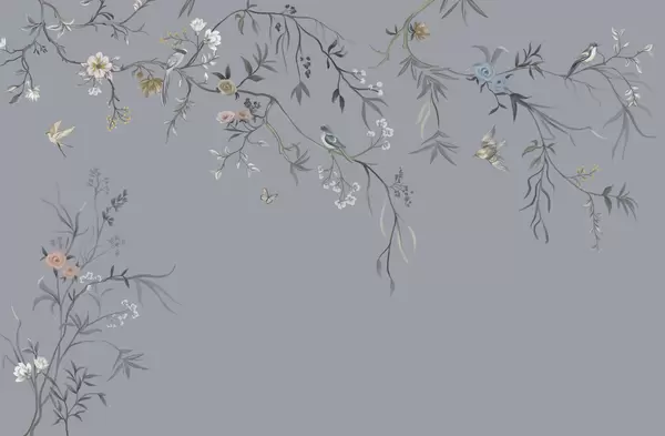 Fototapetai Subtilūs gėlės ir paukščiai ant kreidos fono Nr. w05127