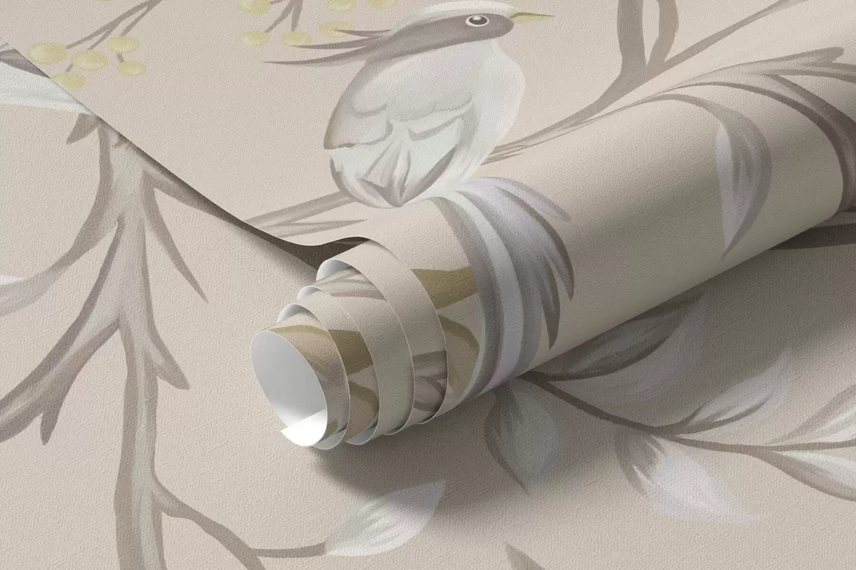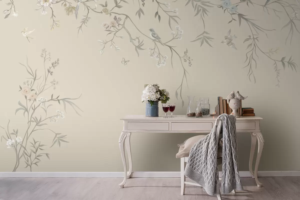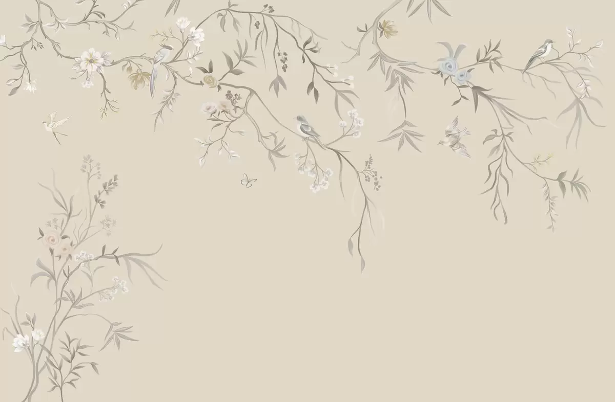 Fototapetai Šviesios gėlės ir paukščiai ant pastelinio fono Nr. w05127v2