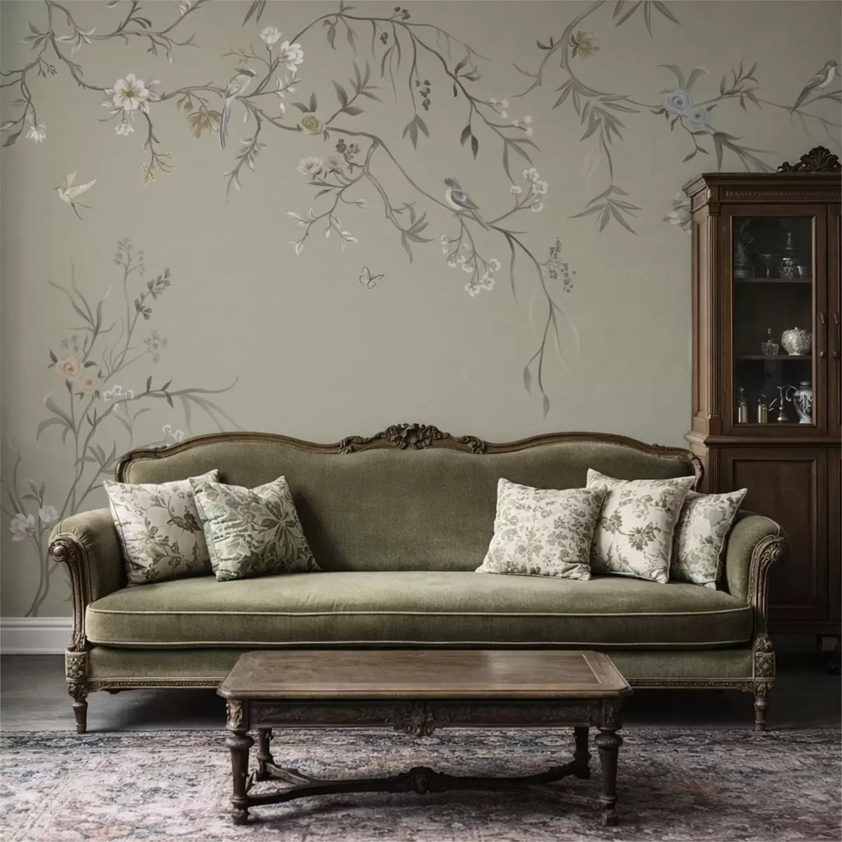 Fototapetai Gėlių raštas su paukščiais ant šalto fono Nr. w05127v6