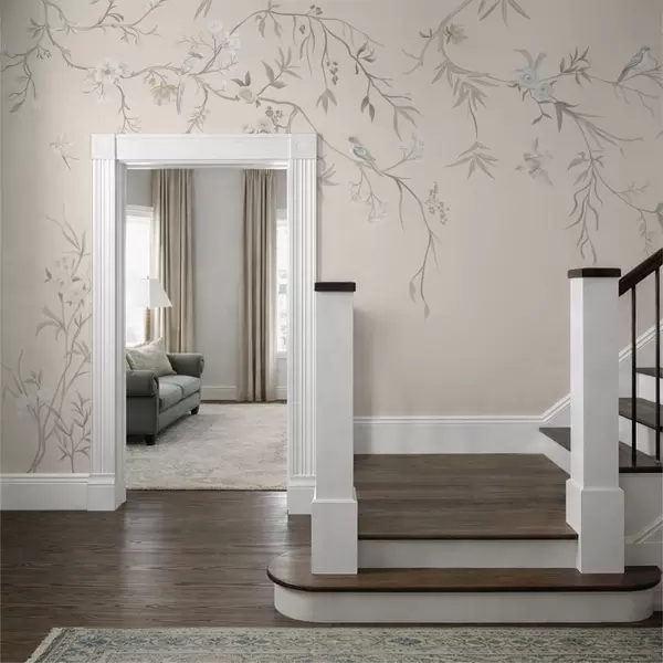 Fototapetai Gėlių šakos su paukščiais ant šviesaus fono Nr. w05127v7