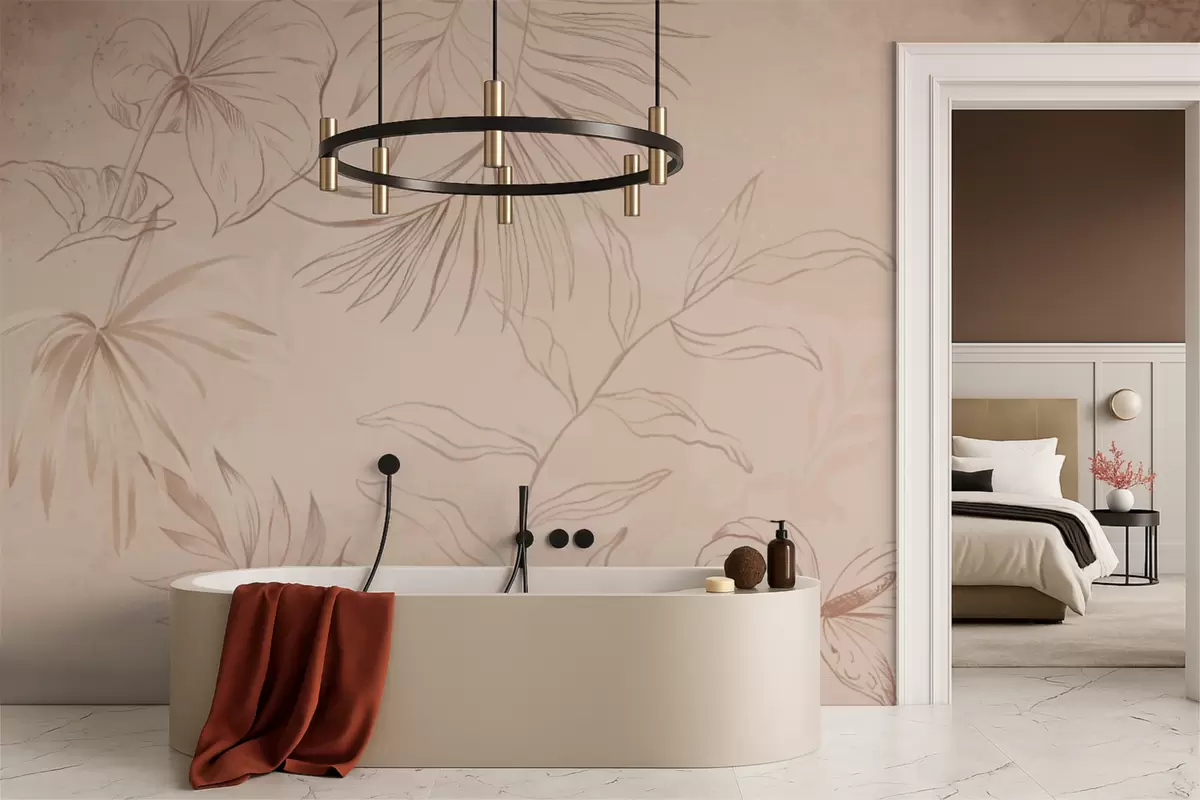 Fototapetai Linijiniai augalai ant tekstūruoto smėlio spalvos fono Nr. w05128