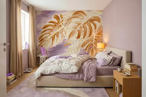 Fototapetai Lapai šiltų oranžinių atspalvių ant violetinio fono Nr. w05130v2
