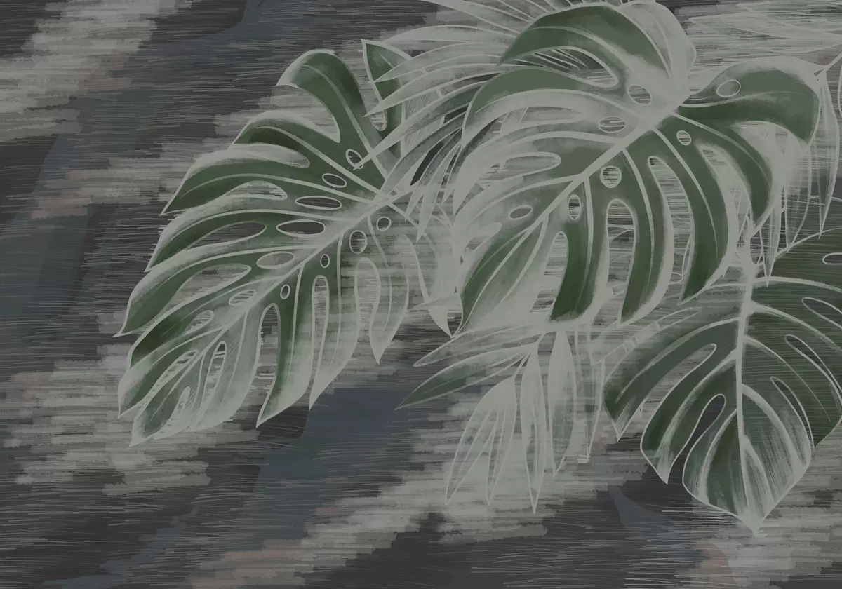 Fototapetai Tamsiai žali lapai ant tekstūruoto tamsaus fono Nr. w05130v4