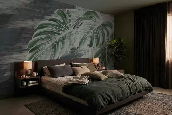 Fototapetai Tamsiai žali lapai ant tekstūruoto tamsaus fono Nr. w05130v4