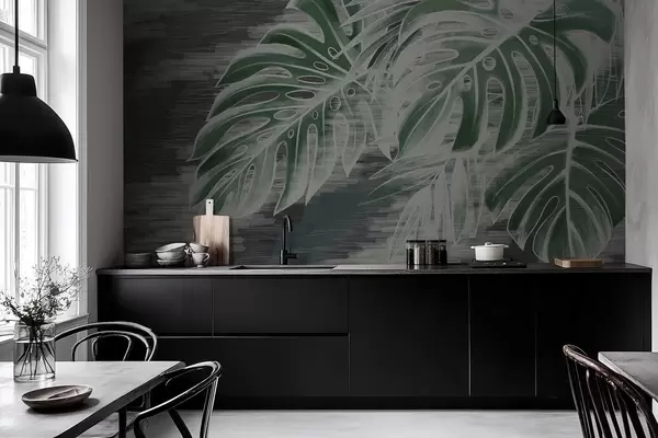 Fototapetai Tamsiai žali lapai ant tekstūruoto tamsaus fono Nr. w05130v4