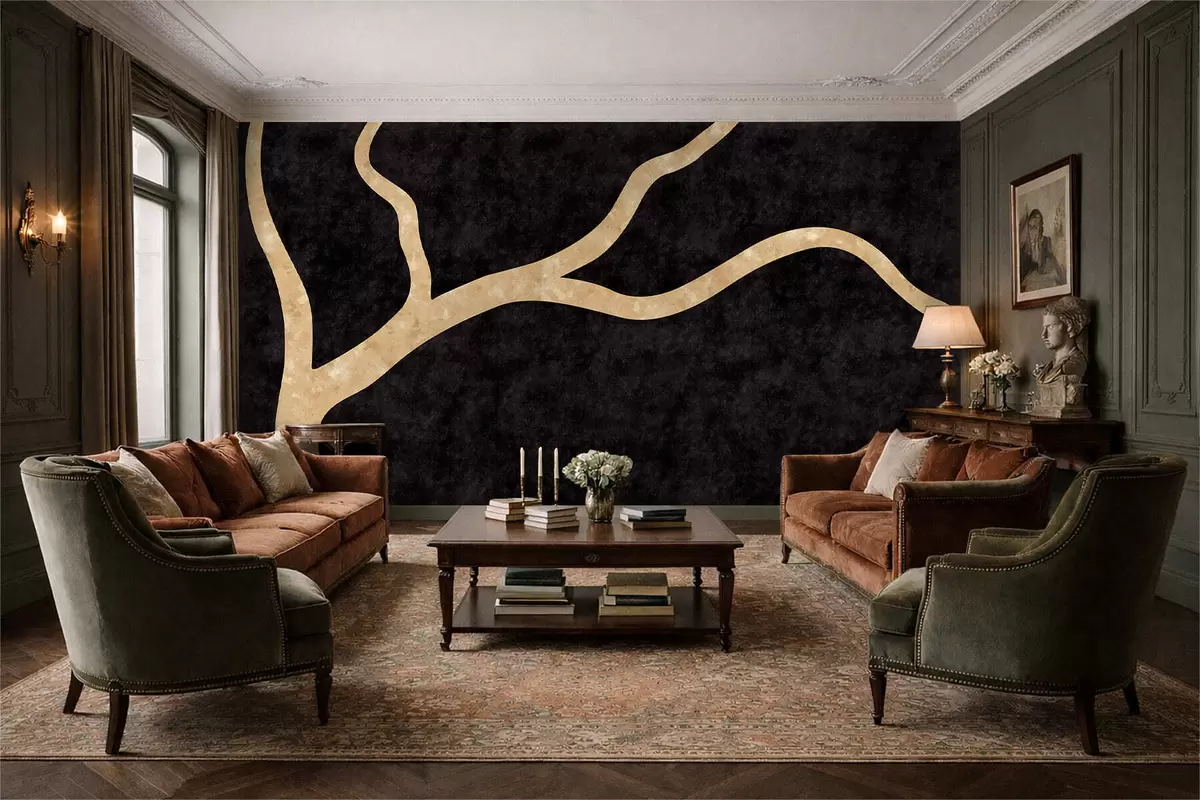 Fototapetai Šviesus šakelių motyvas juodame fone Nr. w05144v4