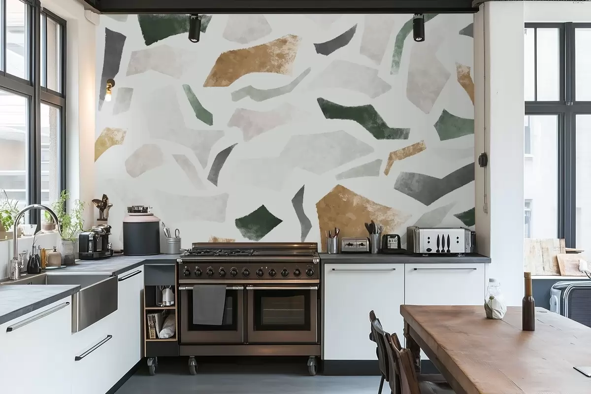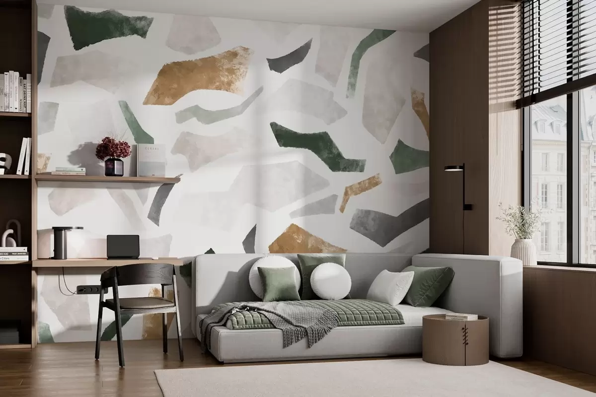 Fototapetai Abstrakčios tekstūros fragmentai žalios ir smėlio spalvų tonais Nr. w05146