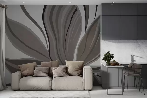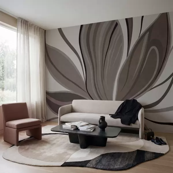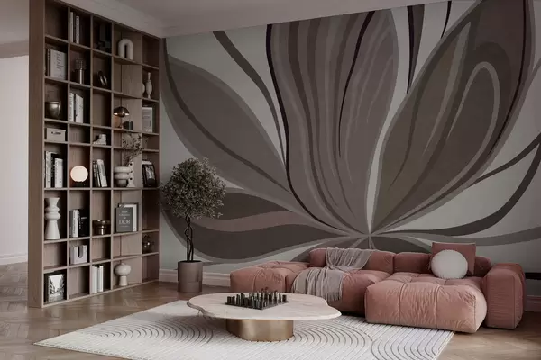 Fototapetai Abstrakti gėlė su švelniomis linijomis pilkai smėlio spalvų tonais Nr. w05147v1