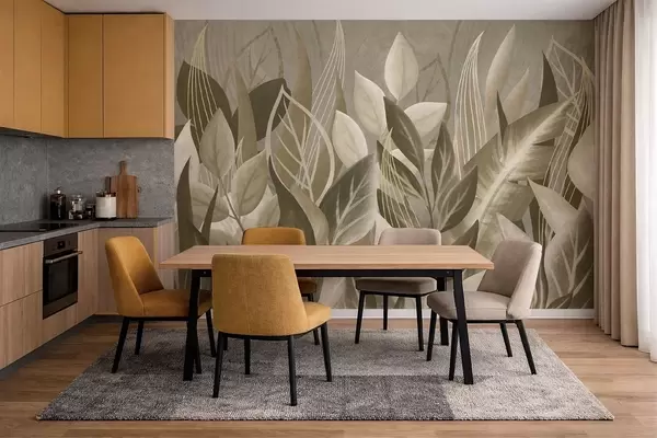 Fototapetai Abstrakčios lapų kompozicijos smėlio ir žalios spalvų tonais Nr. w05148