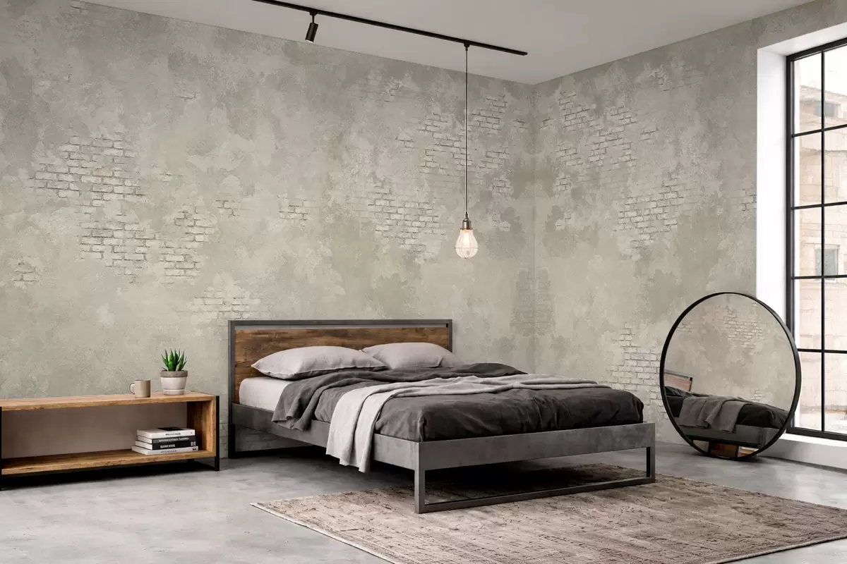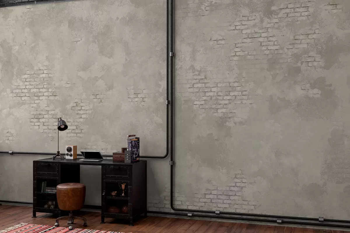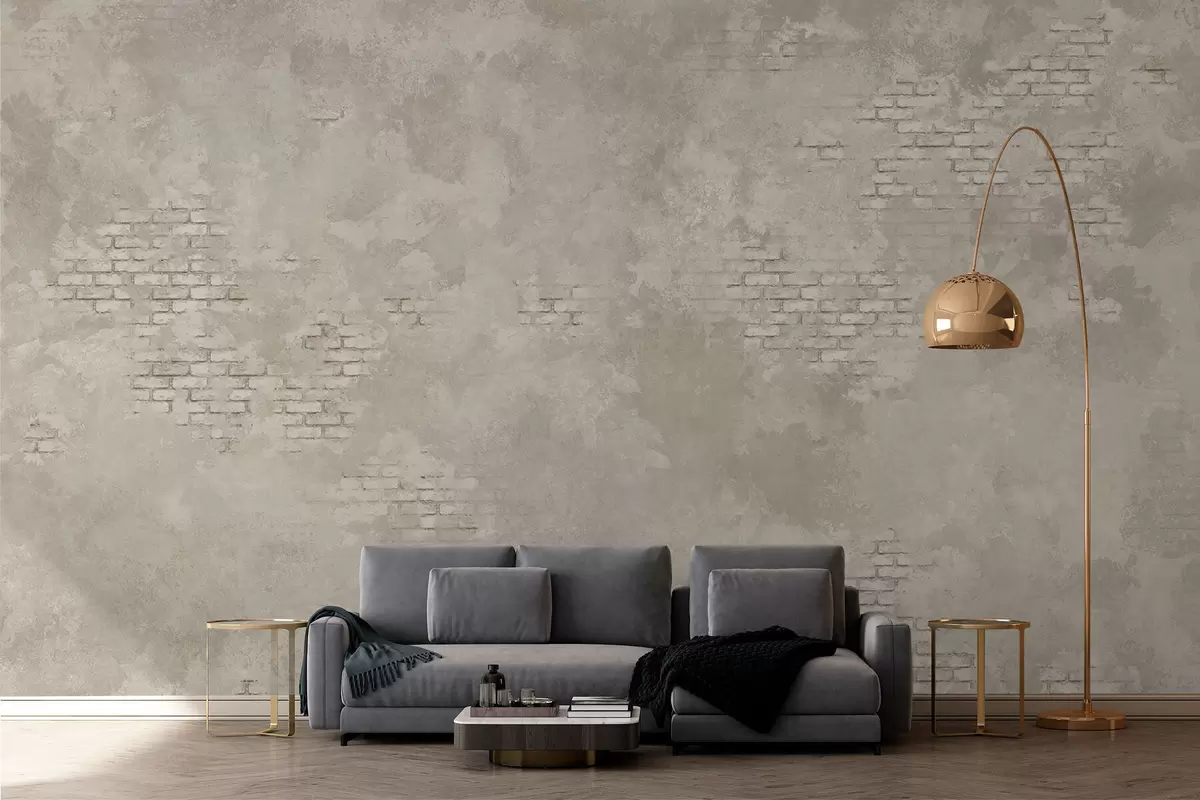 Fototapetai Šviesus „grunge“ stiliaus tinkas su atidengtais plytų plotais Nr. w05161v1
