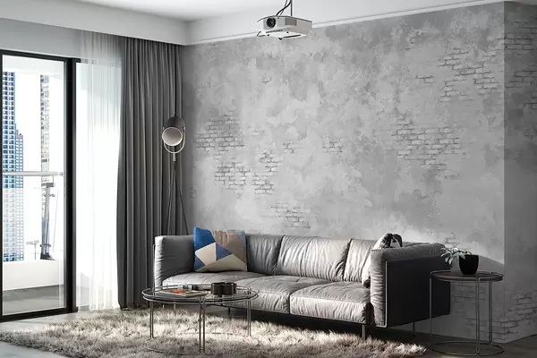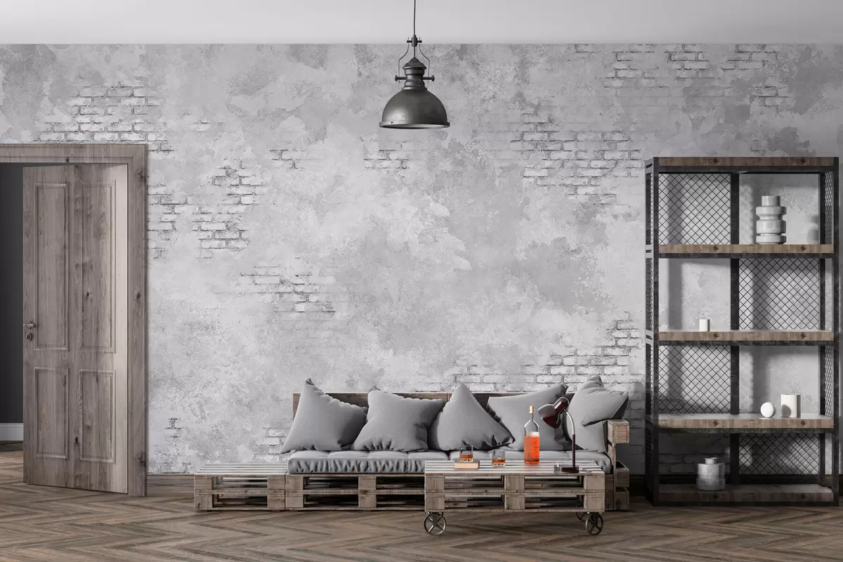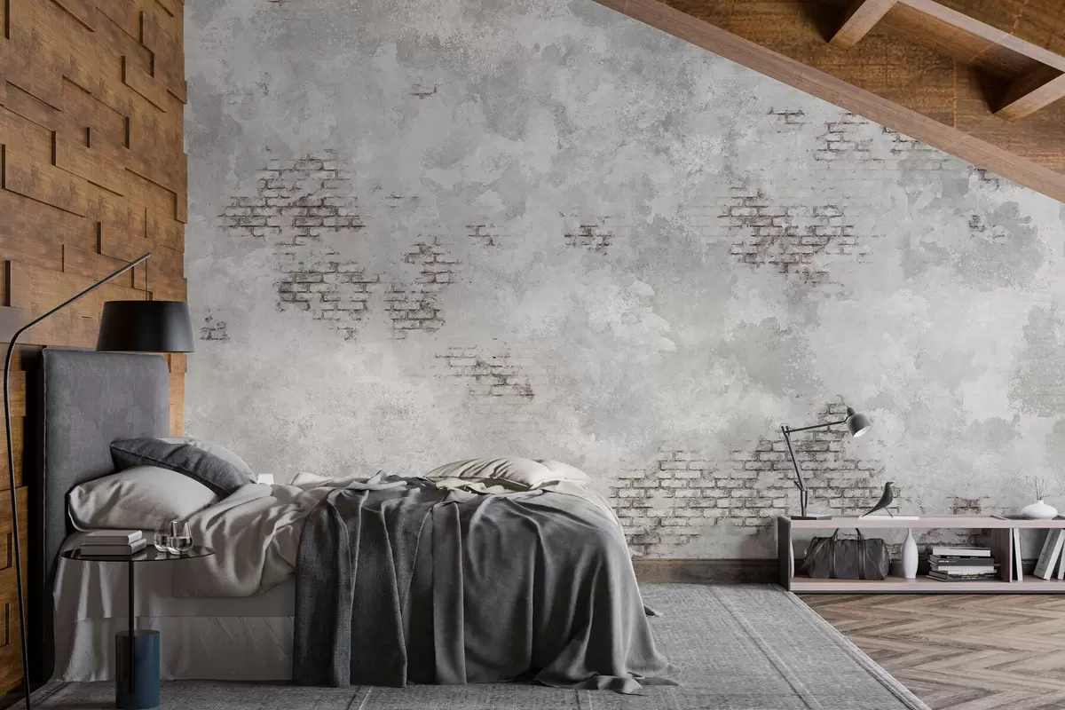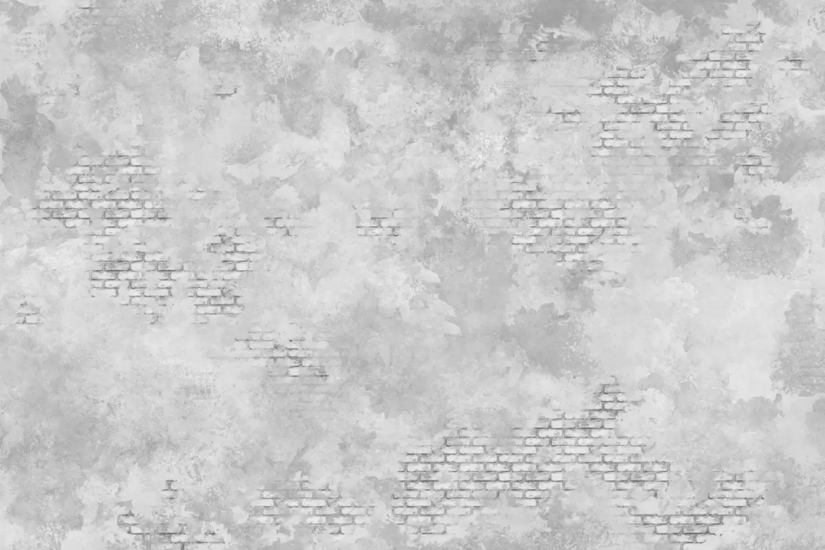 Fototapetai Grunge stiliaus pilkos spalvos tinkas su atidengtais plytų plotais Nr. w05161v2