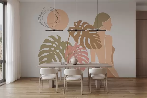 Fototapetai Moteris siluetas šalia tropinių lapų Nr. w05192v1
