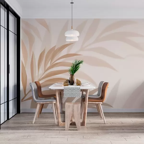 Fototapetai dideli išlenkti palmių lapai smėlio ir rudos spalvos Nr. w05211
