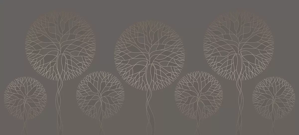 Fototapetai Fantazijos linijiniai medžiai su sodriais vainikais elegantiškų mokos atspalvių Nr. w05213v1