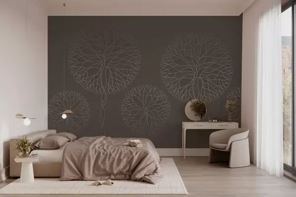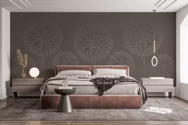 Fototapetai Fantazijos linijiniai medžiai su sodriais vainikais elegantiškų mokos atspalvių Nr. w05213v1