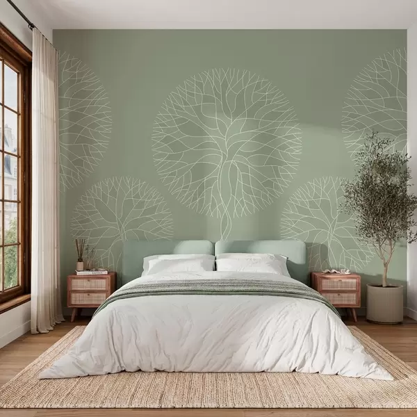 Fototapetai Fantazijos linijiniai medžiai su sodriais vainikais šviesiai žalios spalvos tonais Nr. w05213v6