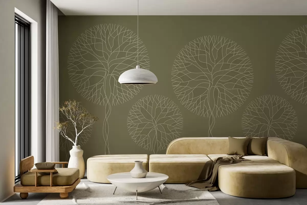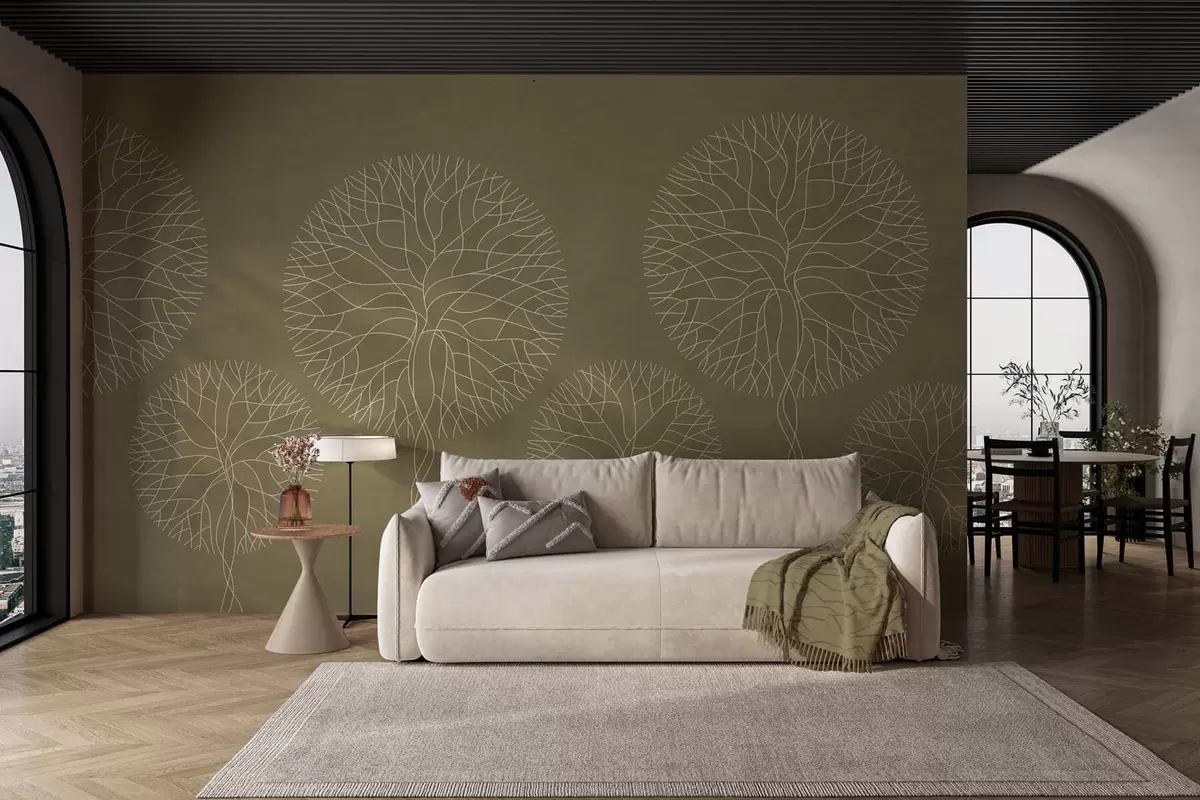 Fototapetai Fantazijos linijiniai medžiai su sodriais vainikais chaki atspalviais Nr. w05213v7
