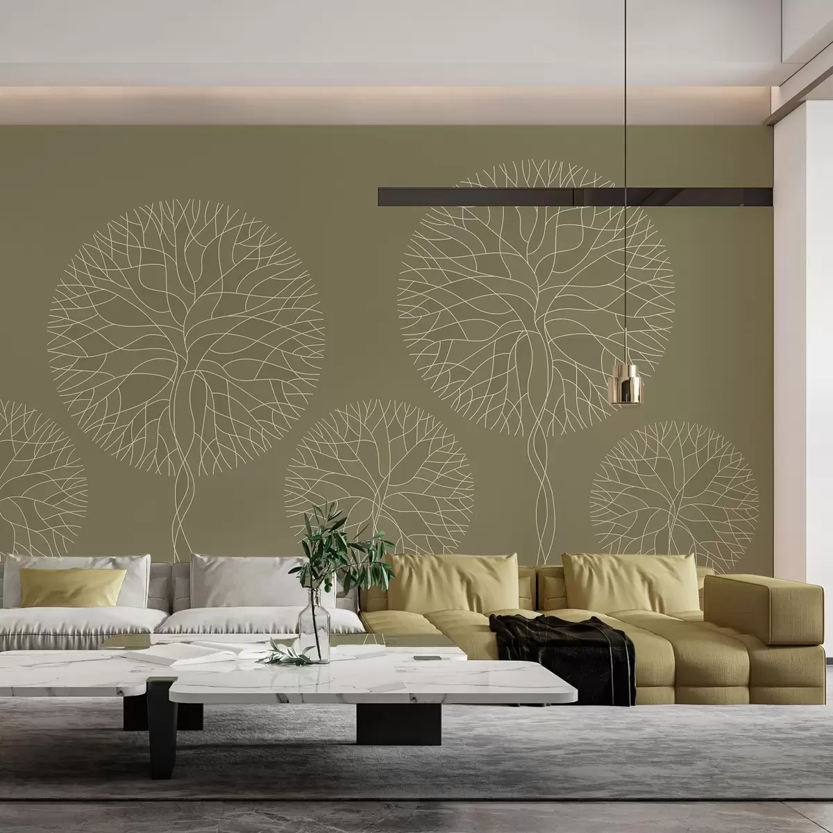 Fototapetai Fantazijos linijiniai medžiai su sodriais vainikais chaki atspalviais Nr. w05213v7