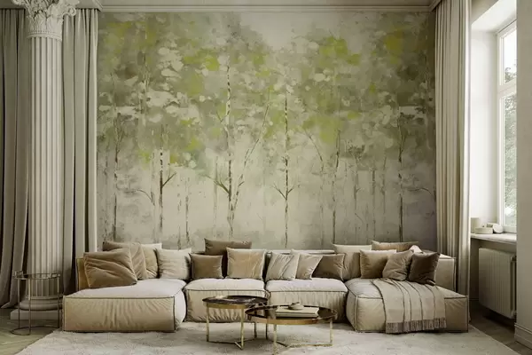Fototapetai Stilizuotas miškas su lieknomis medžių siluetais žalios spalvos tonais Nr. w05221v1